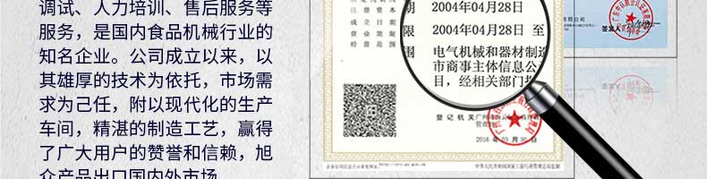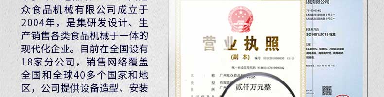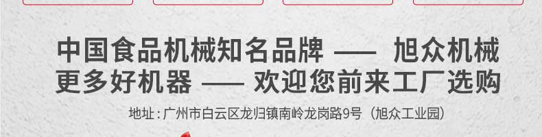 廣州旭眾食品機(jī)械有限公司是一家集科研開(kāi)發(fā),生產(chǎn)設(shè)計(jì),營(yíng)銷服務(wù)為一體的現(xiàn)代化生產(chǎn)企業(yè)?,F(xiàn)代化生產(chǎn)車間,精湛制造技術(shù),所產(chǎn)機(jī)械歷經(jīng)市場(chǎng)重重考驗(yàn),不斷贏得海內(nèi)外客戶的贊譽(yù)。
