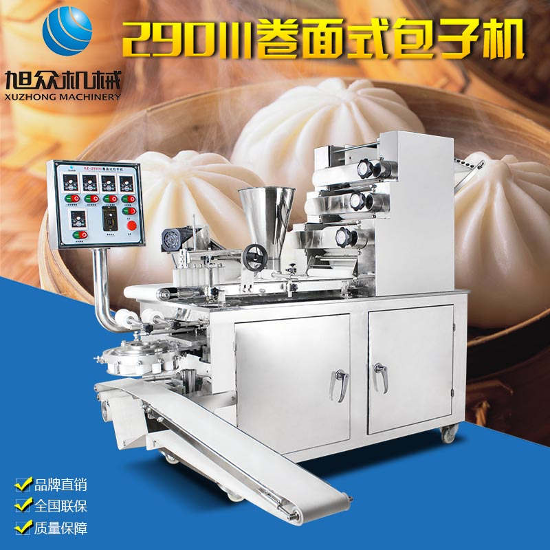290III卷面式包子機(jī),可生產(chǎn)各種不同餡料的包子、各式包餡食品,如豆沙包、南瓜餅、肉包、小籠包、水晶包等幾十種包餡制品。適用于個(gè)體戶、食品廠、學(xué)校等單位食堂??蓾M足不同客戶群體。免費(fèi)提供工藝技術(shù)。