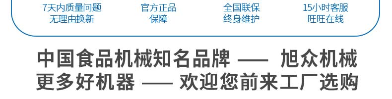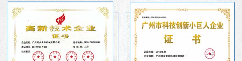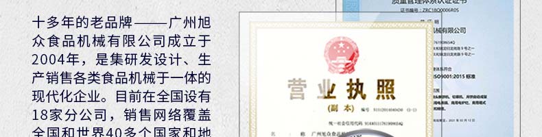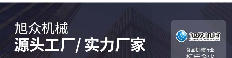廣州旭眾食品機(jī)械有限公司是一家集科研開發(fā),生產(chǎn)設(shè)計,營銷服務(wù)為一體的現(xiàn)代化生產(chǎn)企業(yè)?,F(xiàn)代化生產(chǎn)車間,精湛制造技術(shù),所產(chǎn)機(jī)械歷經(jīng)市場重重考驗,不斷贏得海內(nèi)外客戶的贊譽(yù)。