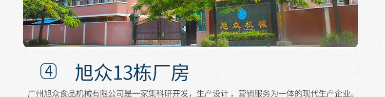 廣州旭眾食品機(jī)械有限公司是一家集科研開發(fā),生產(chǎn)設(shè)計,營銷服務(wù)為一體的現(xiàn)代化生產(chǎn)企業(yè)。現(xiàn)代化生產(chǎn)車間,精湛制造技術(shù),所產(chǎn)機(jī)械歷經(jīng)市場重重考驗,不斷贏得海內(nèi)外客戶的贊譽。
