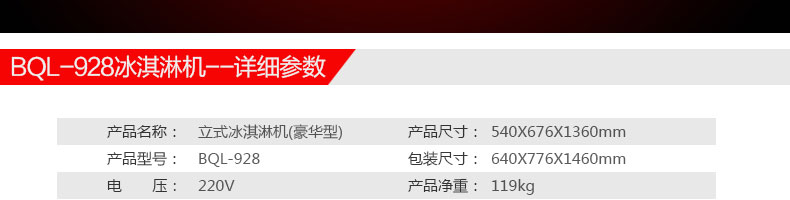 BQL-928立式冰淇淋機(jī),1.選用國際牌壓縮機(jī),輔以旭眾精湛工藝,大大縮短冰淇淋成型時間,高效節(jié)能;2.全新液晶智能觸控面板,簡單明了,多功能易操作;3.全新升級專業(yè)膨化泵,膨化率高,產(chǎn)量增加30%;4.一鍵清洗功能,省時方便;5.主要部件采用不銹鋼材質(zhì),時尚美觀,持久耐用;6.先進(jìn)的機(jī)械攪拌系統(tǒng),機(jī)器運(yùn)行穩(wěn)定可靠,低噪音,產(chǎn)品口感爽滑細(xì)嫩。