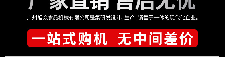 廣州旭眾食品機(jī)械有限公司是一家集科研開發(fā),生產(chǎn)設(shè)計(jì),營銷服務(wù)為一體的現(xiàn)代化生產(chǎn)企業(yè)?,F(xiàn)代化生產(chǎn)車間,精湛制造技術(shù),所產(chǎn)機(jī)械歷經(jīng)市場(chǎng)重重考驗(yàn),不斷贏得海內(nèi)外客戶的贊譽(yù)。