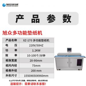 XZ-170多功能墊紙機(jī),適用于大規(guī)模生產(chǎn)多功能墊紙機(jī)適用于包子、饅頭、豆包等需要墊包紙的食。伺服控制、墊紙長度可調(diào)整。高效墊紙告別人工旭眾牌ⅩZ-170多功能墊紙機(jī)適用于規(guī)模生產(chǎn)的食品企業(yè)制作包子機(jī)、饅頭等食品的自動(dòng)墊包紙?jiān)O(shè)備。