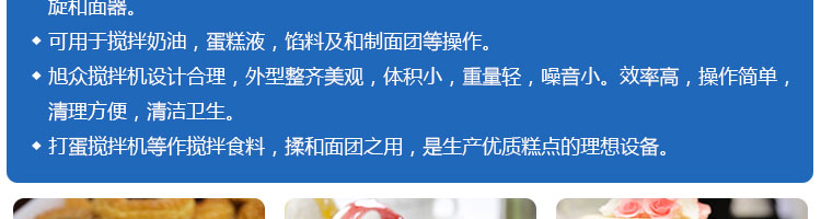 SZM10、15、20、25、30攪拌機系列,可用于攪拌奶油、蛋糕液、餡料及和制面團等操作。打蛋攪拌機等作攪拌食料、揉和面團之用,是生產(chǎn)優(yōu)質(zhì)糕點的理想設備,適用于酒店、飯店、學校部門、面包屋以及食品廠家。