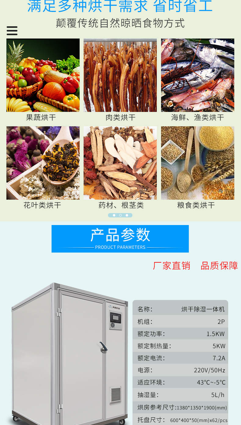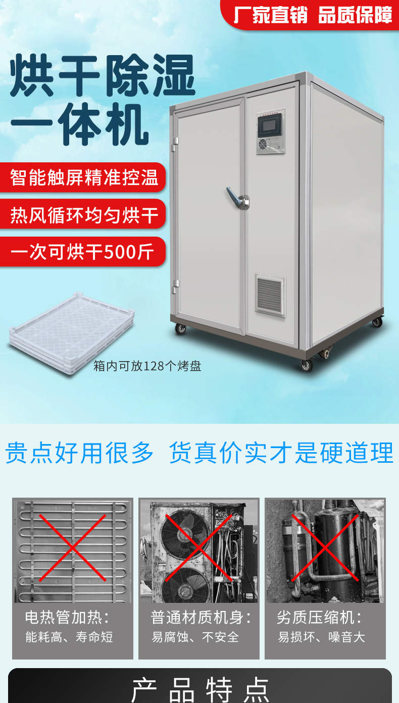 烘干除濕一體機,烘干除濕體機,智能觸屏精準控溫熱風循環(huán)均勻烘干次可烘干500斤,智能烘干時代出類拔萃的新體驗,1度電能=4度,熱能比傳統(tǒng)電加熱。干燥設(shè)備減少60%以上電能消耗。