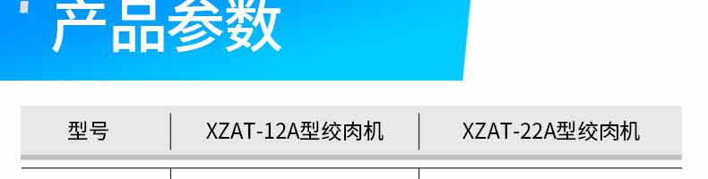 名稱XZAT-22A絞肉機(jī) 電源220V/50HZ 功率850W,1100W 產(chǎn)量250KG/h,300KG/h 尺寸395*360*375MM 重量25KG,28KG 規(guī)格 其他