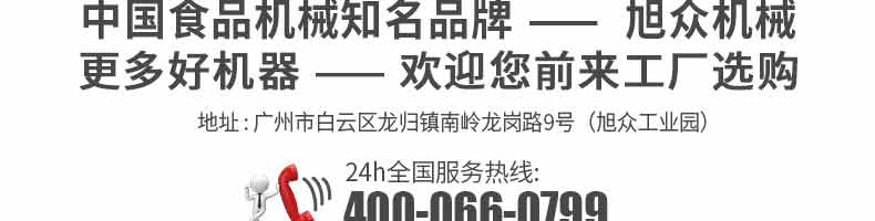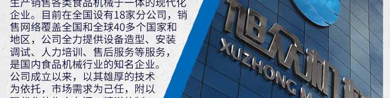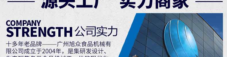 廣州旭眾食品機械有限公司是一家集科研開發(fā),生產(chǎn)設計,營銷服務為一體的現(xiàn)代化生產(chǎn)企業(yè)。現(xiàn)代化生產(chǎn)車間,精湛制造技術,所產(chǎn)機械歷經(jīng)市場重重考驗,不斷贏得海內(nèi)外客戶的贊譽。