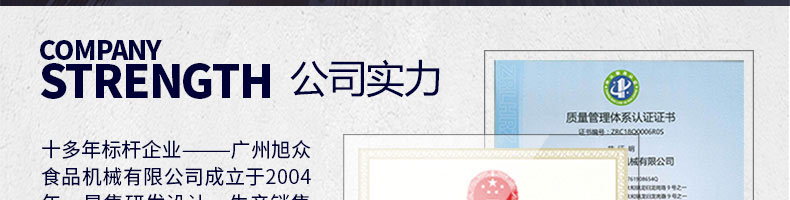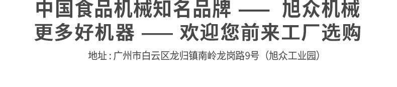 廣州旭眾食品機(jī)械有限公司是一家集科研開發(fā),生產(chǎn)設(shè)計(jì),營銷服務(wù)為一體的現(xiàn)代化生產(chǎn)企業(yè)?,F(xiàn)代化生產(chǎn)車間,精湛制造技術(shù),所產(chǎn)機(jī)械歷經(jīng)市場重重考驗(yàn),不斷贏得海內(nèi)外客戶的贊譽(yù)。