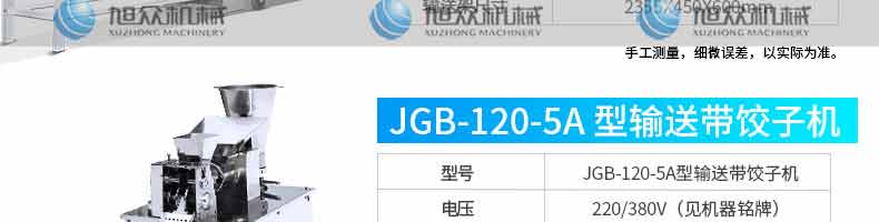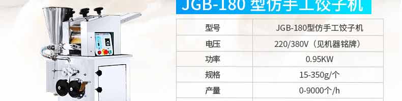 JGB-210型仿手工餃子機(jī),本機(jī)采用自動(dòng)壓面皮包餃子的新工藝技術(shù),本機(jī)可生產(chǎn)速凍餃子等,能生產(chǎn)各種肉餡、肉菜混合餡、全菜餡及其他種餡的餃子,適用于餃子館、食品生產(chǎn)廠家、賓館、飯店、餐廳、團(tuán)體食堂、學(xué)校、部隊(duì)。免費(fèi)上門(mén)安裝調(diào)試,贈(zèng)送面點(diǎn)工藝