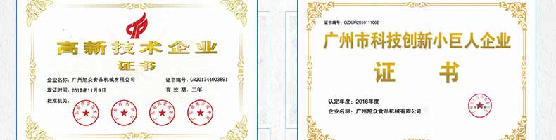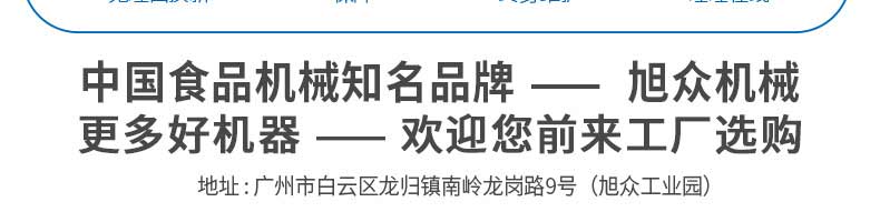 廣州旭眾食品機械有限公司是一家集科研開發(fā),生產設計,營銷服務為一體的現(xiàn)代化生產企業(yè)?,F(xiàn)代化生產車間,精湛制造技術,所產機械歷經市場重重考驗,不斷贏得海內外客戶的贊譽。
