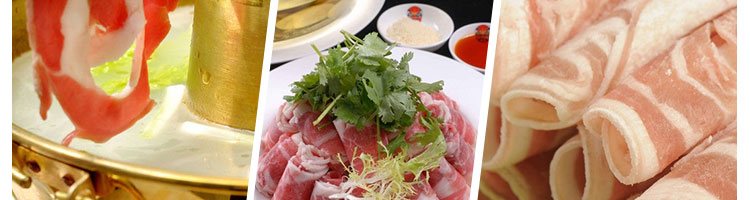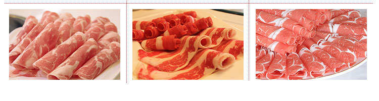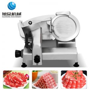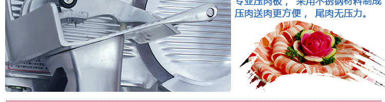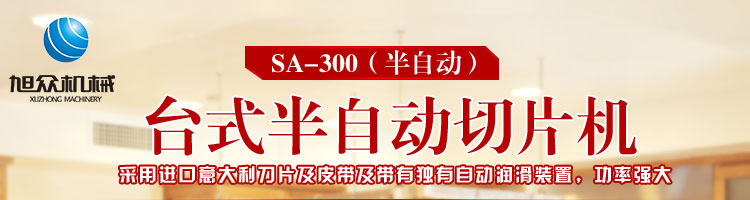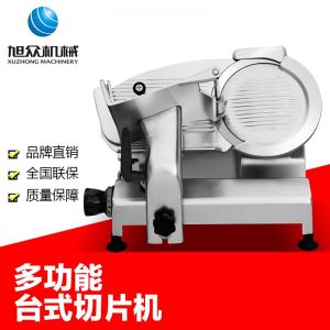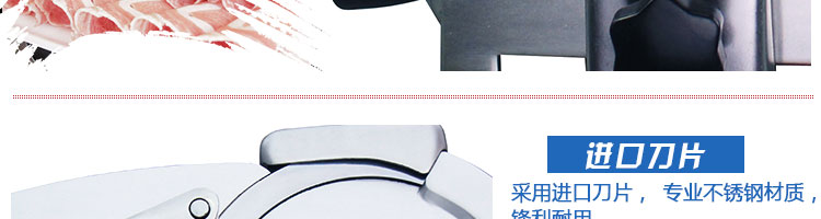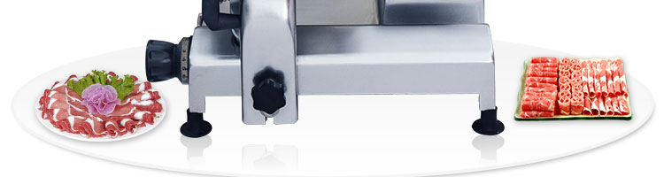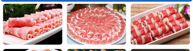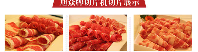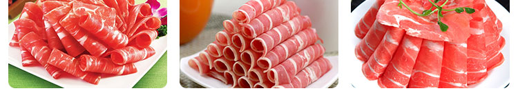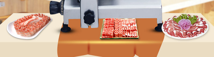 臺式半自動切片機(jī),適合切無骨肉類和其他類似榨菜帶有彈性的食物,把原材料肉切成肉片,并可自動成卷狀??汕信H馄?、羊肉片等