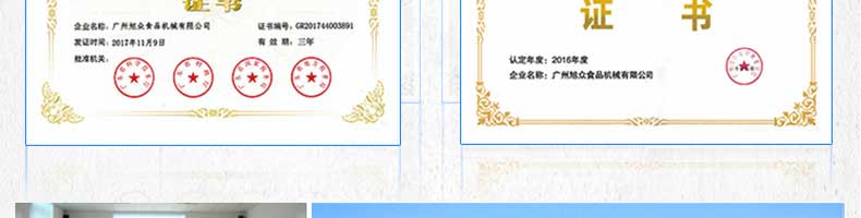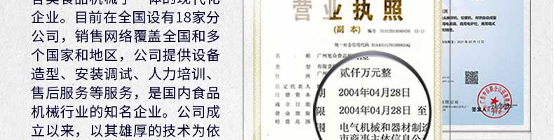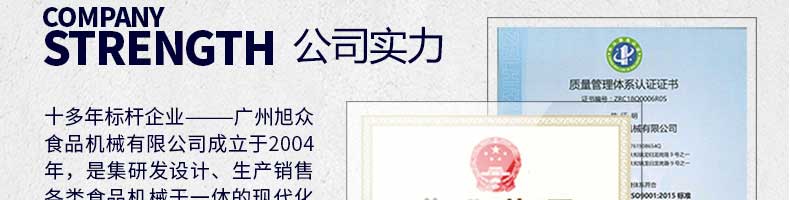 廣州旭眾食品機械有限公司是一家集科研開發(fā),生產(chǎn)設(shè)計,營銷服務(wù)為一體的現(xiàn)代化生產(chǎn)企業(yè)。現(xiàn)代化生產(chǎn)車間,精湛制造技術(shù),所產(chǎn)機械歷經(jīng)市場重重考驗,不斷贏得海內(nèi)外客戶的贊譽。