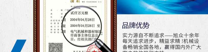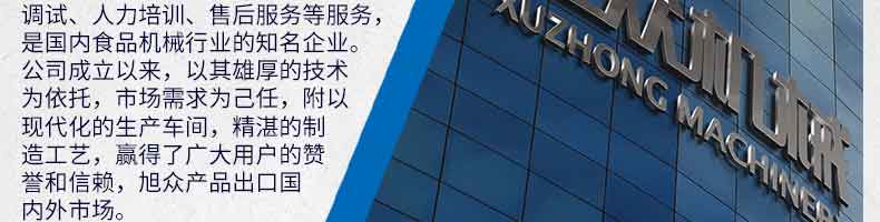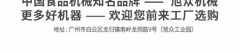 廣州旭眾食品機(jī)械有限公司是一家集科研開(kāi)發(fā),生產(chǎn)設(shè)計(jì),營(yíng)銷(xiāo)服務(wù)為一體的現(xiàn)代化生產(chǎn)企業(yè)?,F(xiàn)代化生產(chǎn)車(chē)間,精湛制造技術(shù),所產(chǎn)機(jī)械歷經(jīng)市場(chǎng)重重考驗(yàn),不斷贏得海內(nèi)外客戶的贊譽(yù)。