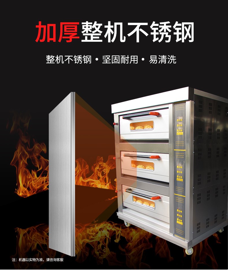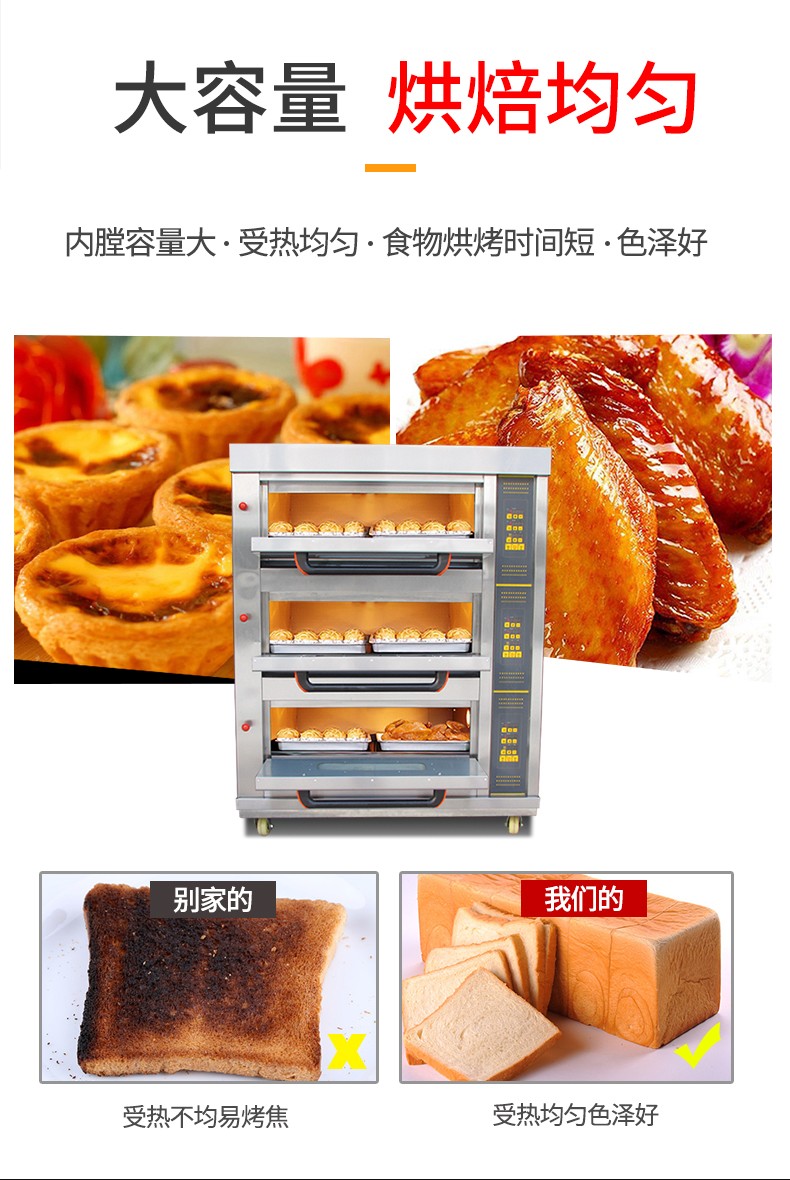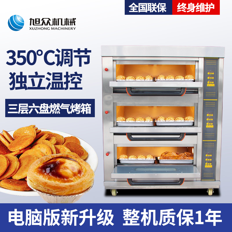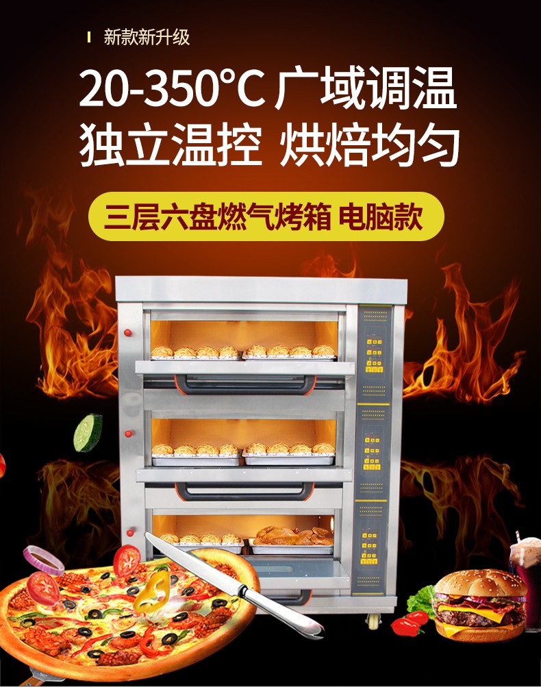 名稱三層六盤電腦版燃氣烤箱 電源220V 功率0.3KW 產(chǎn)量 尺寸1340*908*1690mm 重量300KG 規(guī)格三層六盤 其他