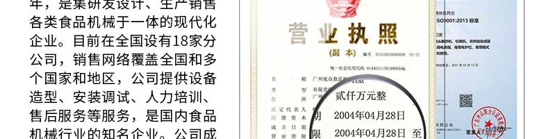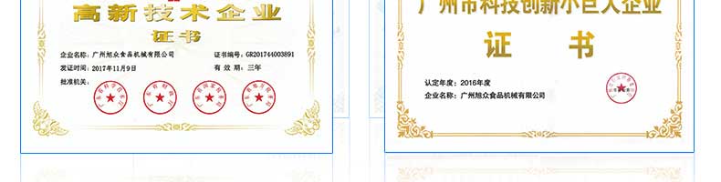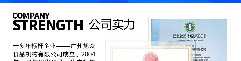 廣州旭眾食品機(jī)械有限公司是一家集科研開發(fā),生產(chǎn)設(shè)計,營銷服務(wù)為一體的現(xiàn)代化生產(chǎn)企業(yè)?,F(xiàn)代化生產(chǎn)車間,精湛制造技術(shù),所產(chǎn)機(jī)械歷經(jīng)市場重重考驗,不斷贏得海內(nèi)外客戶的贊譽。