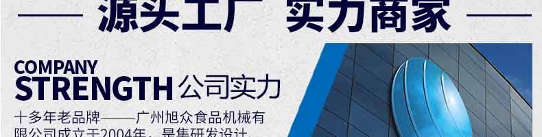 廣州旭眾食品機(jī)械有限公司是一家集科研開發(fā),生產(chǎn)設(shè)計(jì),營銷服務(wù)為一體的現(xiàn)代化生產(chǎn)企業(yè)?,F(xiàn)代化生產(chǎn)車間,精湛制造技術(shù),所產(chǎn)機(jī)械歷經(jīng)市場(chǎng)重重考驗(yàn),不斷贏得海內(nèi)外客戶的贊譽(yù)。