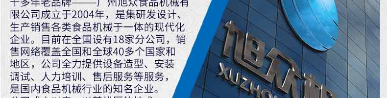 廣州旭眾食品機(jī)械有限公司是一家集科研開發(fā),生產(chǎn)設(shè)計(jì),營銷服務(wù)為一體的現(xiàn)代化生產(chǎn)企業(yè)?,F(xiàn)代化生產(chǎn)車間,精湛制造技術(shù),所產(chǎn)機(jī)械歷經(jīng)市場重重考驗(yàn),不斷贏得海內(nèi)外客戶的贊譽(yù)。