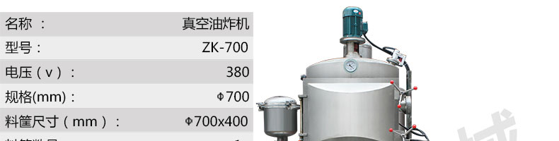 zk-700雙室低溫真空油炸機,適用于水果類、蔬菜類、干果類、水產(chǎn)品機畜禽肉類等。自動控制溫度,無過熱、無過壓,確保產(chǎn)品質(zhì)量和安全生產(chǎn)。